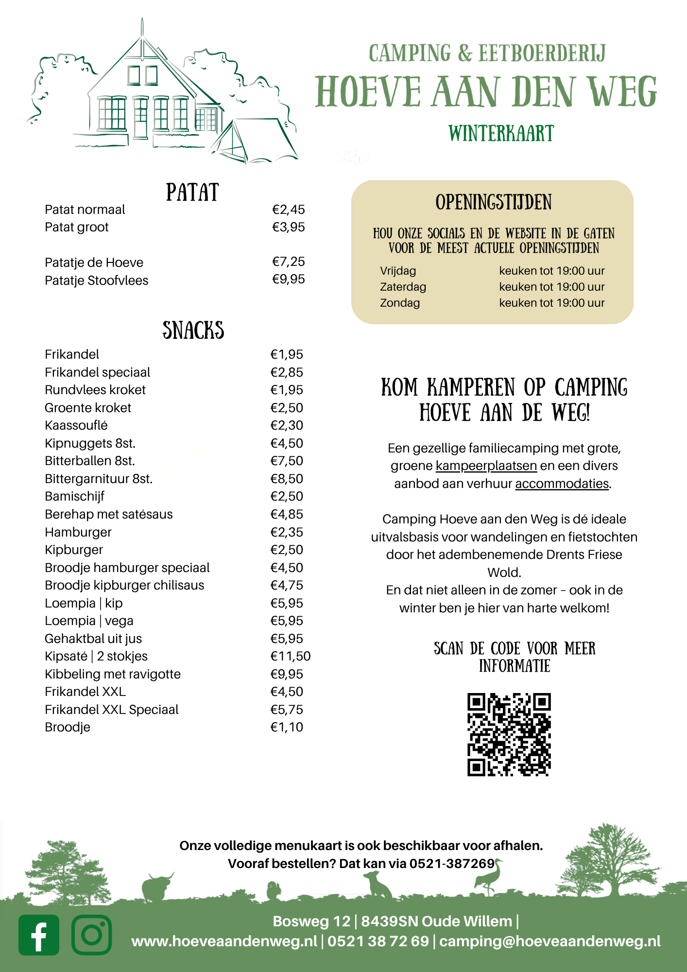 Hier bereiden we heerlijke verse friet en diverse snacks, perfect na een dag vol buitenplezier. Daarnaast kunt u ook plates bestellen om af te halen